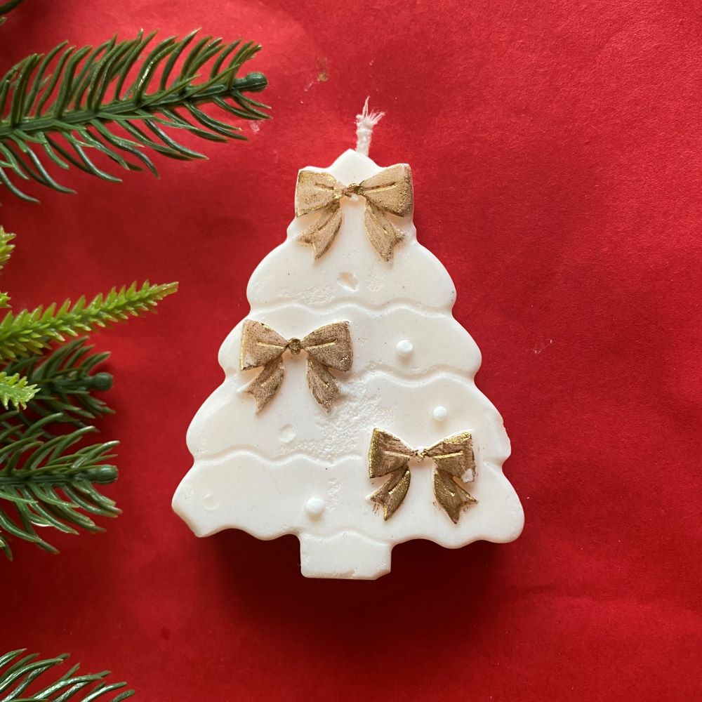 Choinka z wosku sojowego ze złotymi zdobieniami – 50 g